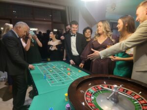 Our professional Fun casino hire service transformed the venue into a glamorous mini-casino, complete with authentic Blackjack and Roulette tables and experienced croupiers who kept guests entertained from start to finish. The atmosphere was buzzing, the competition was friendly, and the laughter never stopped.